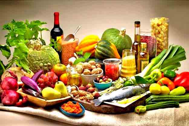Les fruits et les légumes sont faibles en sodium et riches en potassium, ils participent à la régulation de la tension artérielle. Les fruits, les légumes et produits complets (y compris les pâtes, le riz et la semoule) sont également sources de fibres alimentaires. Les fibres solubles pièges font partie des matières grasses consommées lors d'un repas et abaissent le taux de mauvais cholestérol (LDL). Une alimentation riche en fibres est également une protection contre le cancer de l'intestin. L’huile d'olive est essentiellement composée d'acide oléique, un gras monoinsaturé qui réduit le mauvais cholestérol (LDL) et augmente le taux de bon cholestérol (HDL) qui a une action bénéfiques sur les artères.