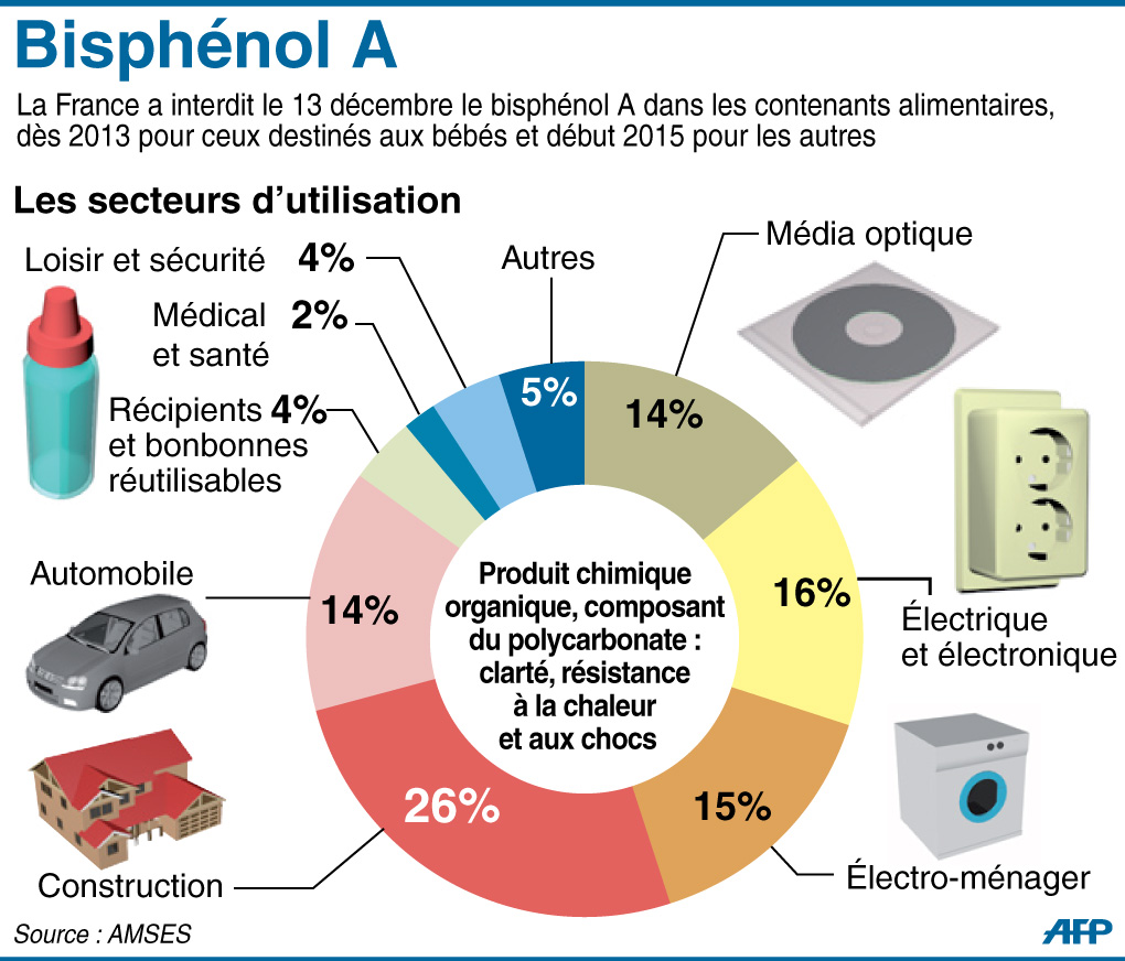 Le BPA est utilisé dans la production de bouteilles en plastique (polycarbonate) et des récipients alimentaires, ainsi que dans les résines époxy qui servent au revêtement des boîtes de conserve métalliques et des canettes.